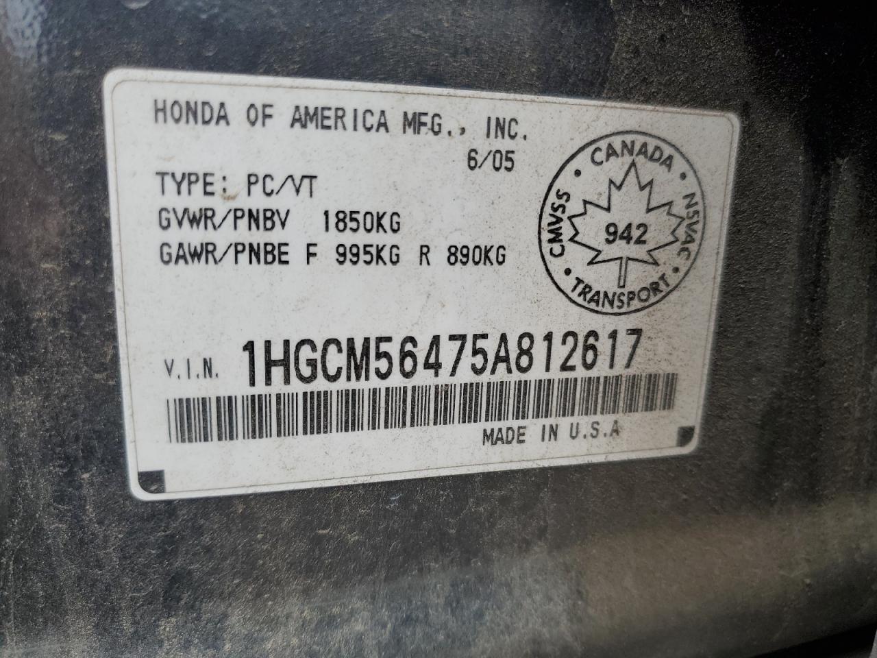 1HGCM56475A812617