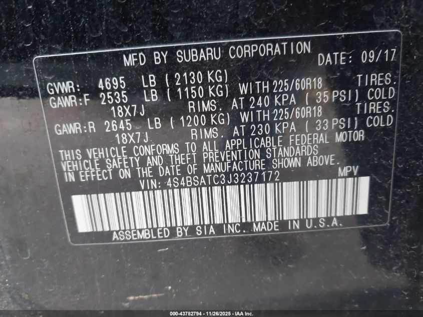 2018 SUBARU OUTBACK 2.5I TOURING