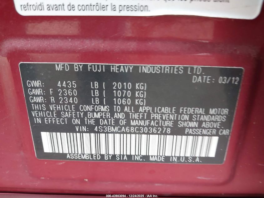 2012 SUBARU LEGACY 2.5I