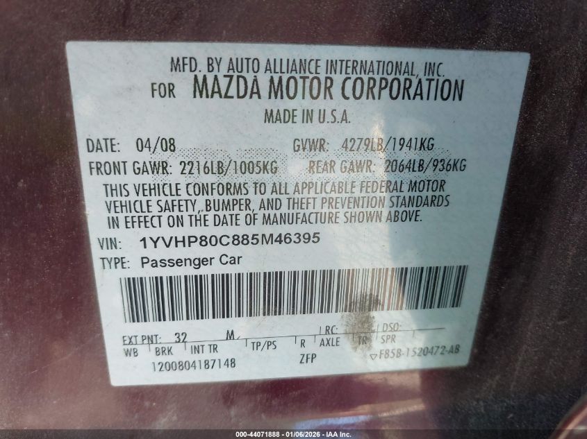 2008 MAZDA MAZDA6 I SPORT VE