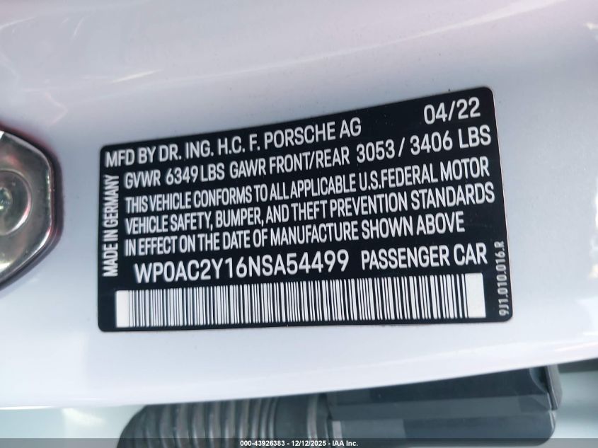 WP0AC2Y16NSA54499