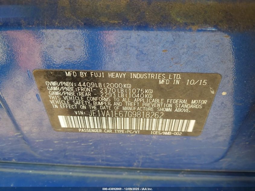 2016 SUBARU WRX PREMIUM