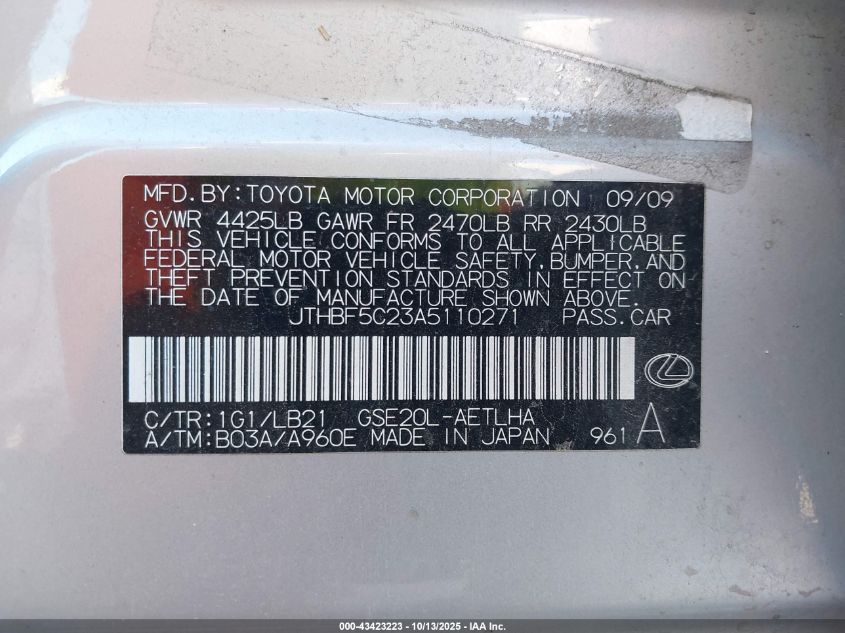 2010 LEXUS IS 250