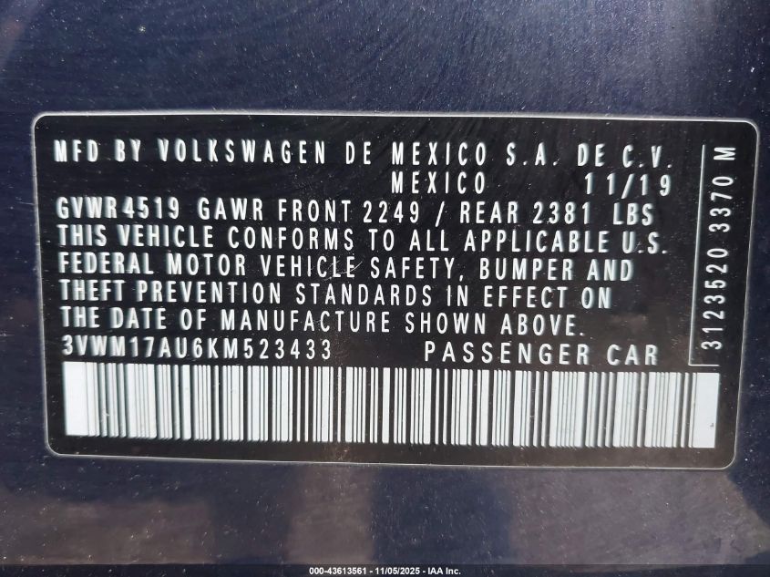 3VWM17AU6KM523433