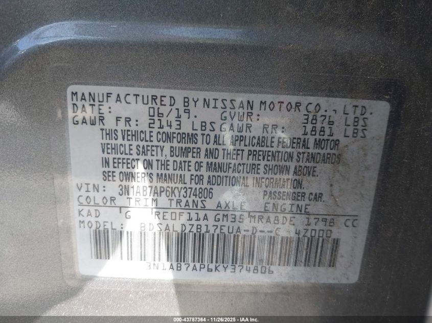 2019 NISSAN SENTRA SV