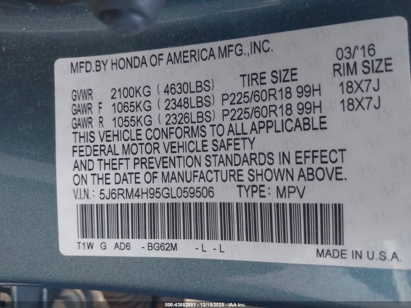 2016 HONDA CR-V TOURING