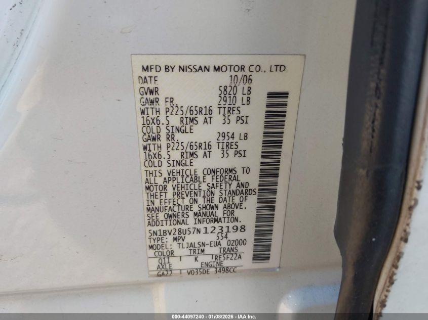2007 NISSAN QUEST 3.5 S