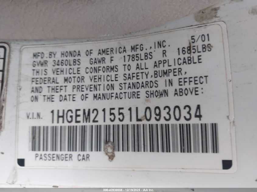 2001 HONDA CIVIC LX