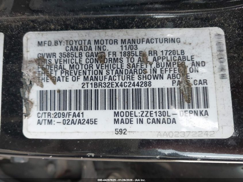 2004 TOYOTA COROLLA LE