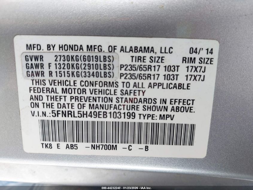 2014 HONDA ODYSSEY EX
