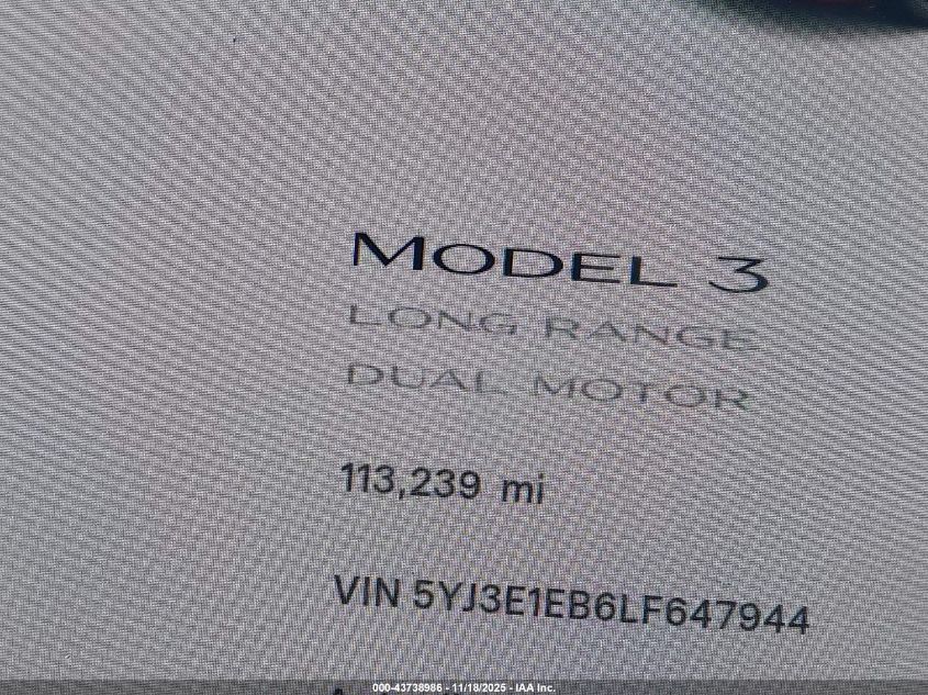 2020 TESLA MODEL 3 LONG RANGE DUAL MOTOR ALL-WHEEL DRIVE