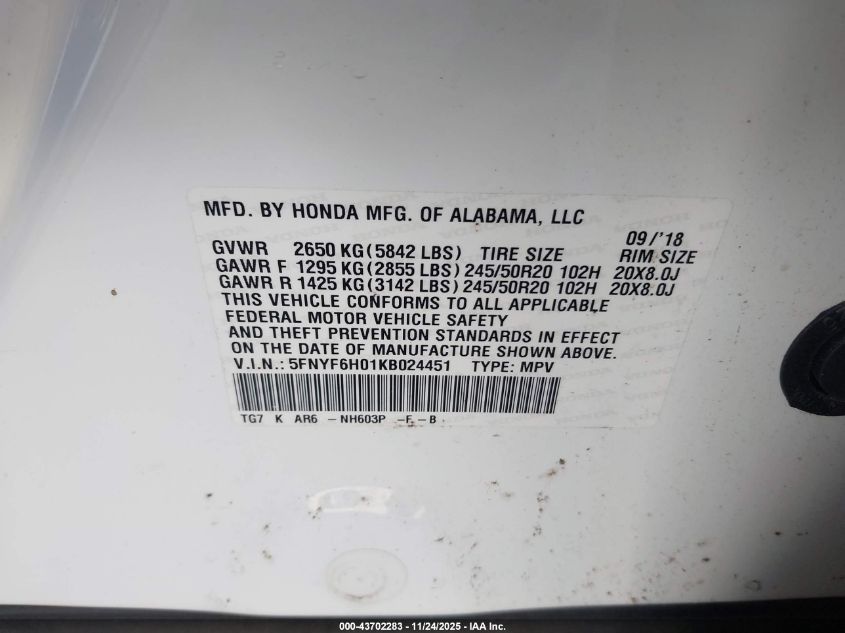 5FNYF6H01KB024451