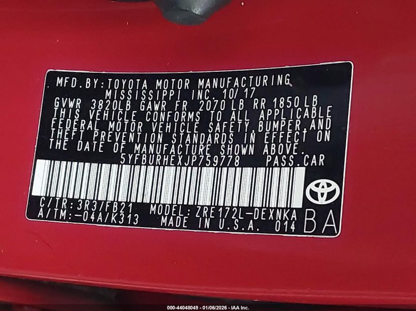2018 TOYOTA COROLLA LE