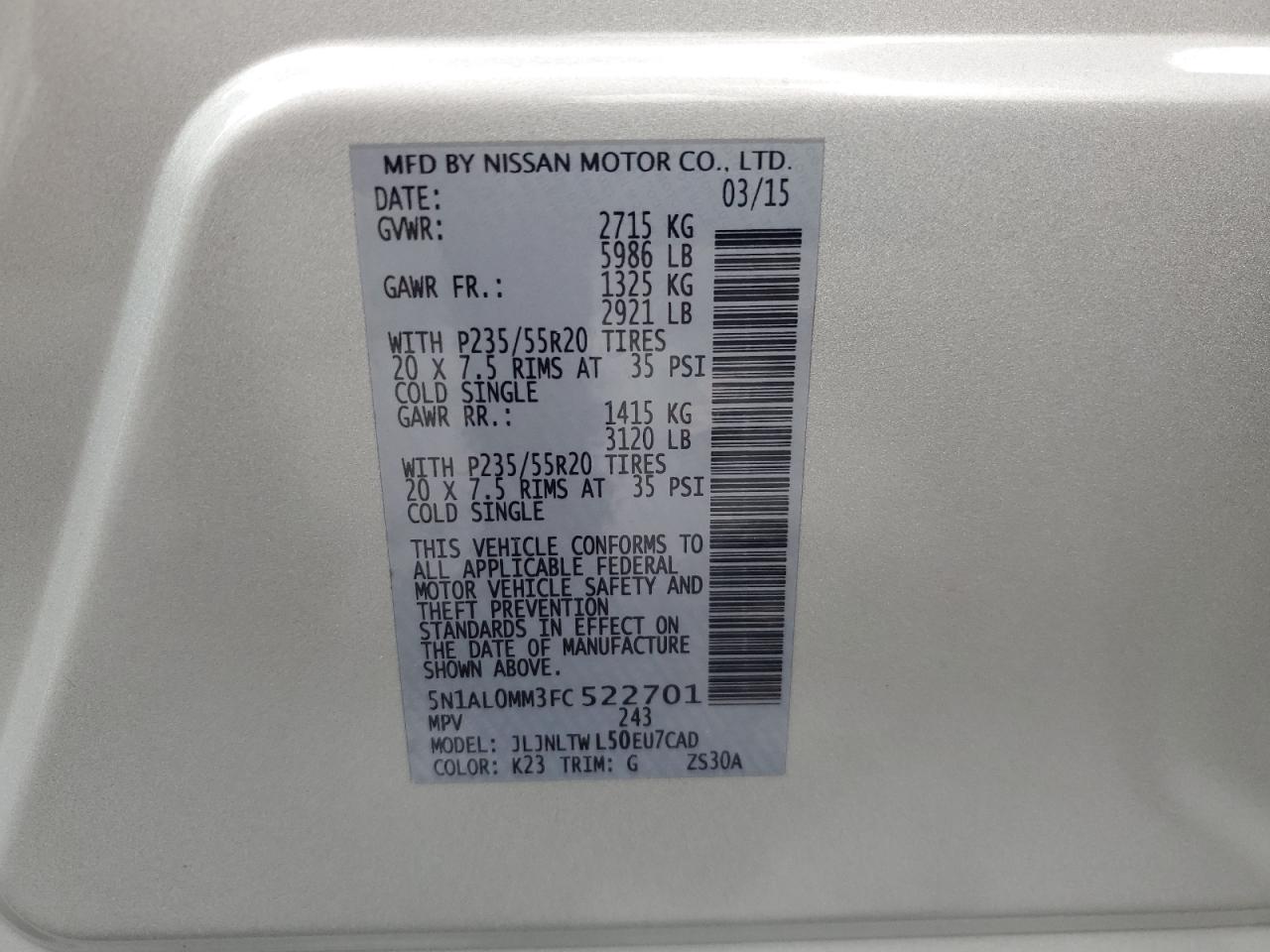 VIN: 5N1AL0MM3FC522701