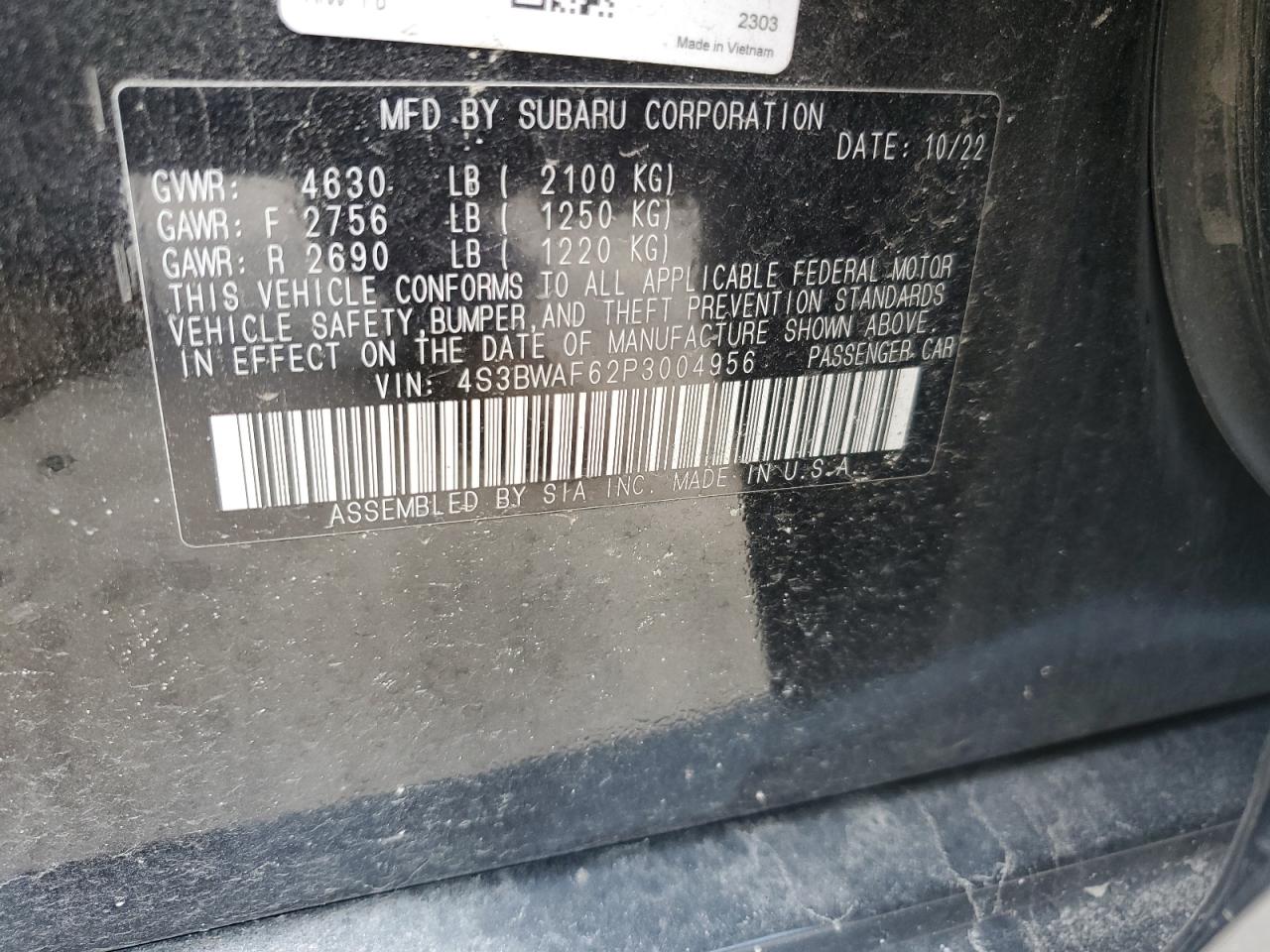 VIN: 4S3BWAF62P3004956