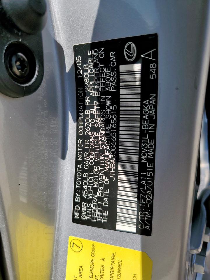 VIN: JTHBA30G665165615
