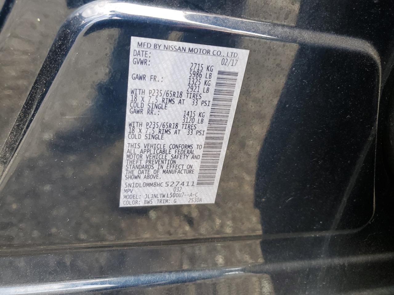 VIN: 5N1DL0MM8HC527411