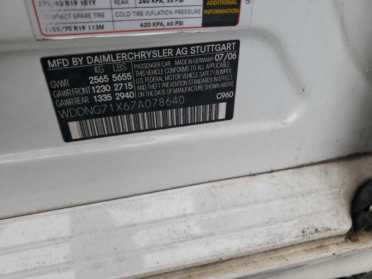 VIN: WDDNG71X67A078640