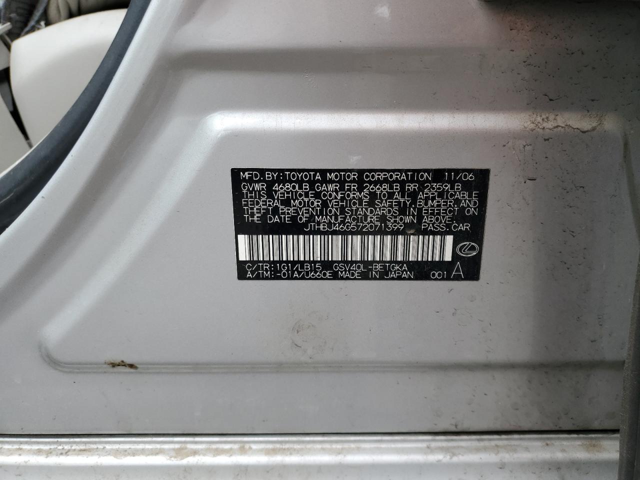 VIN: JTHBJ46G572071399