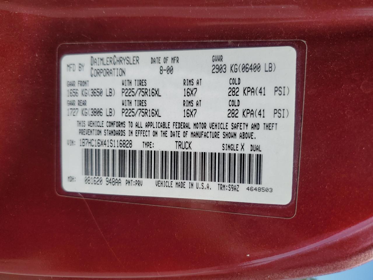 VIN: 1B7HC16X41S116828