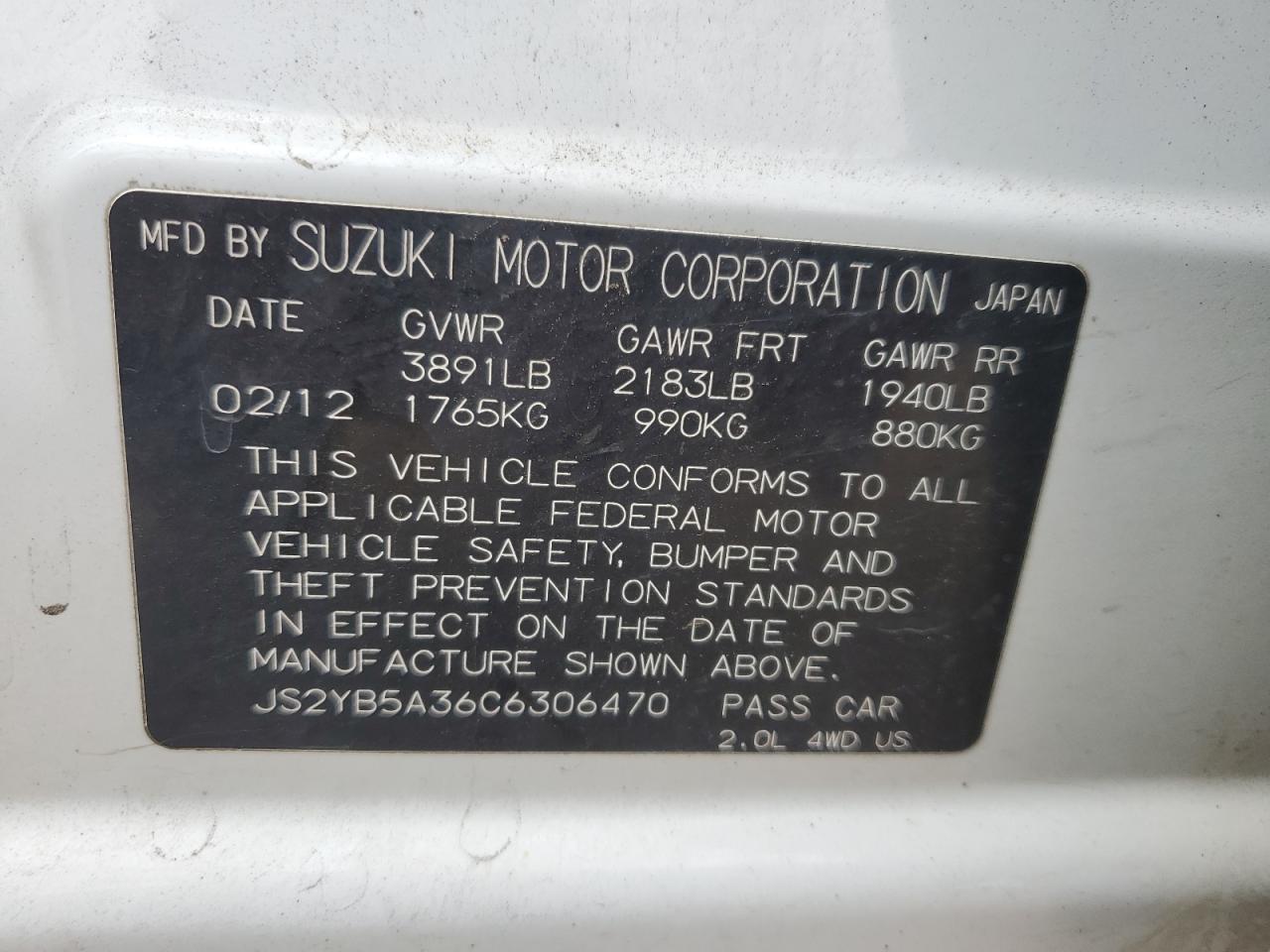 VIN: JS2YB5A36C6306470