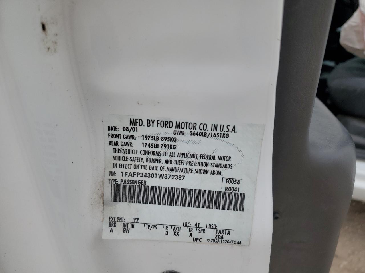 VIN: 1FAFP34301W372387