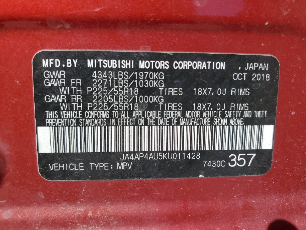VIN: JA4AP4AU5KU011428