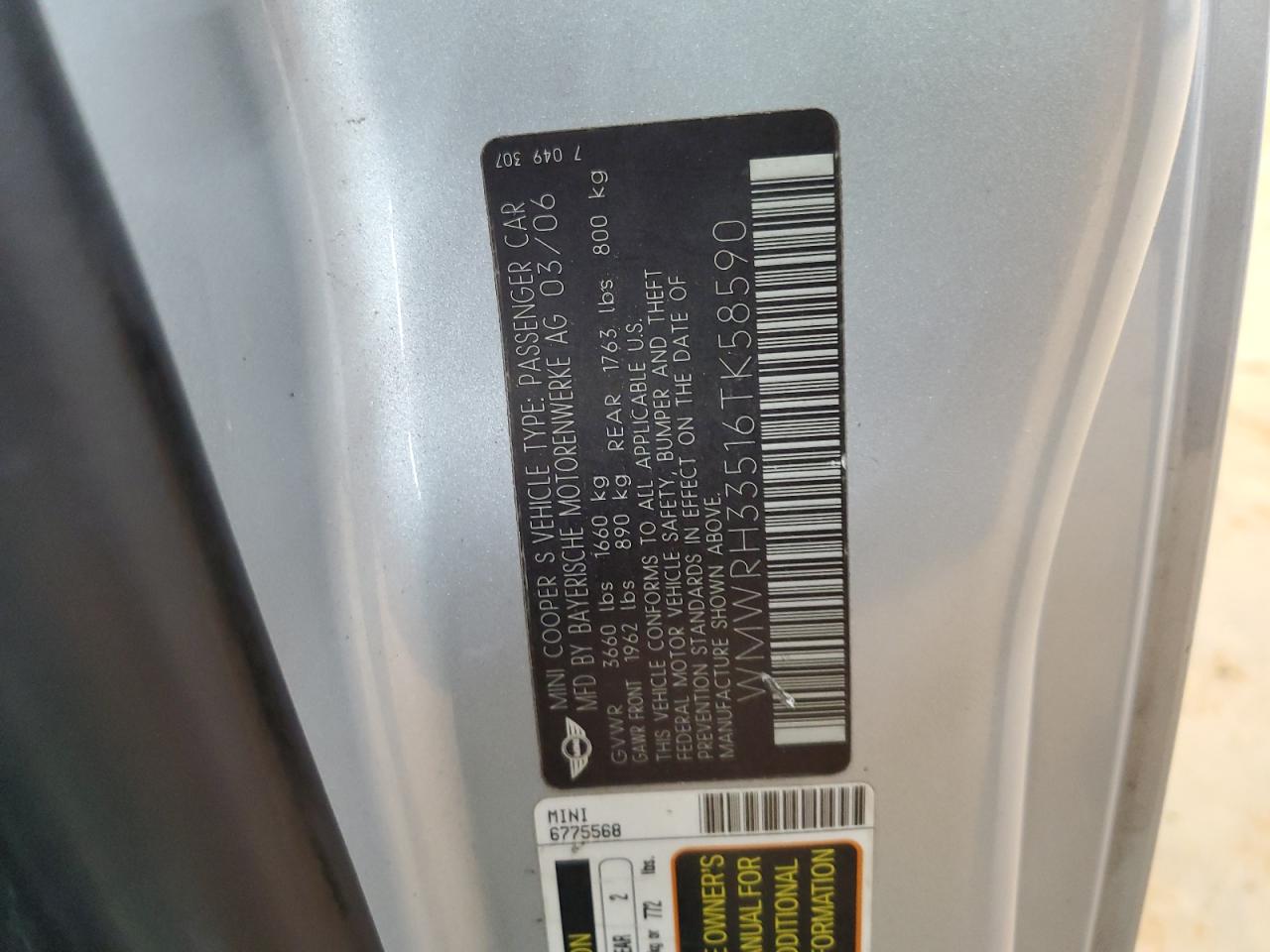 VIN: WMWRH33516TK58590