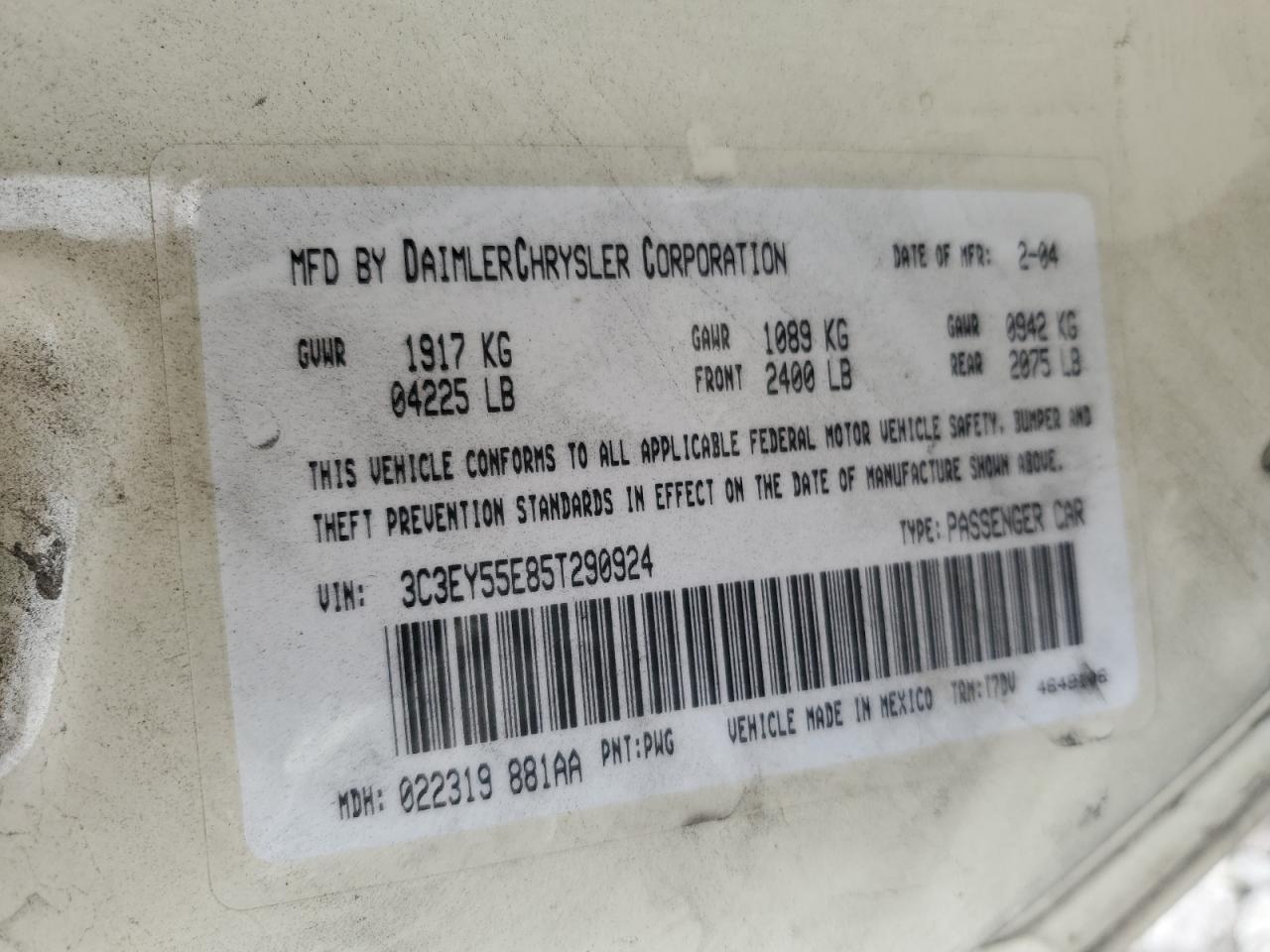 VIN: 3C3EY55E85T290924
