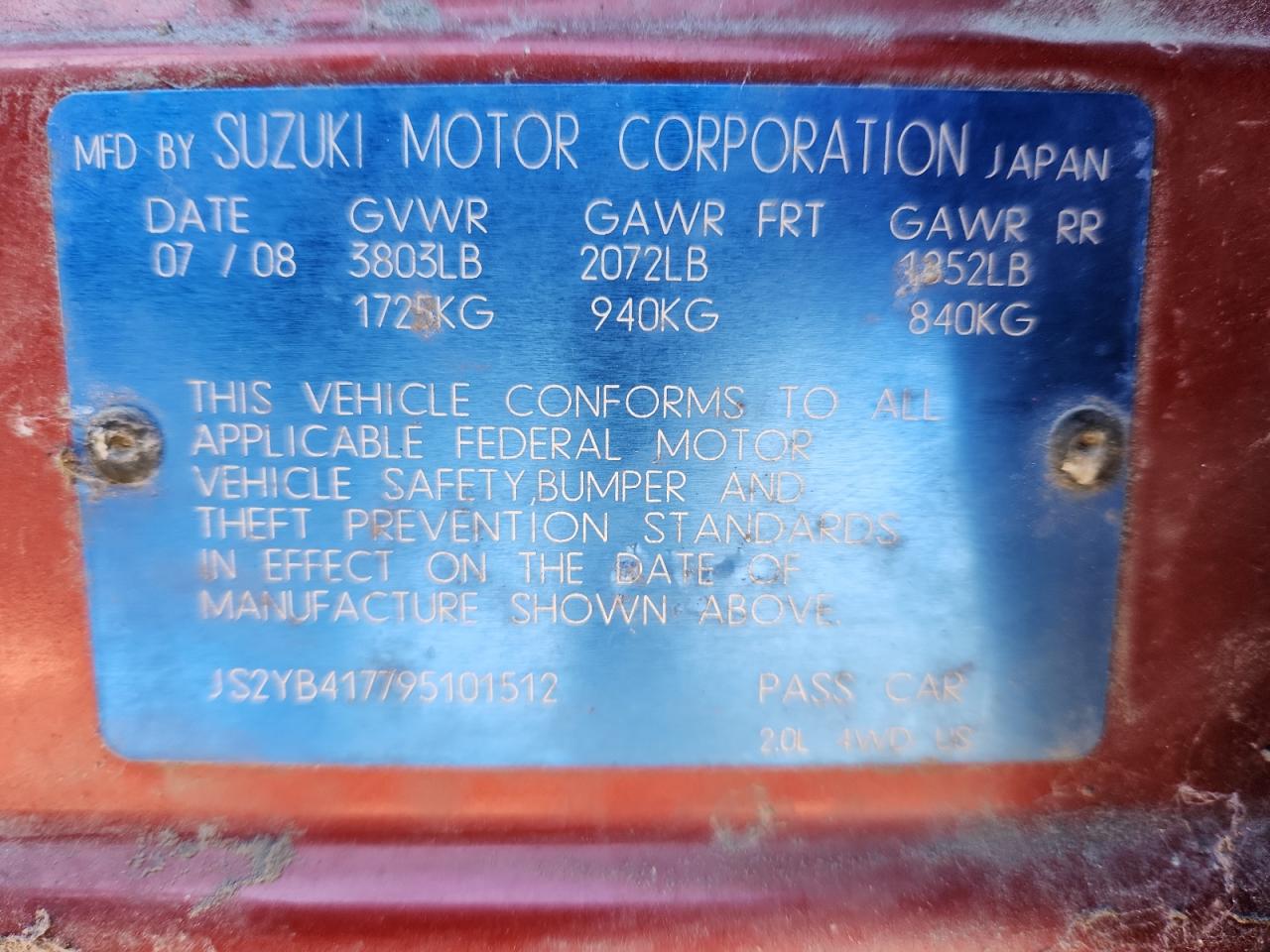 VIN: JS2YB417795101512