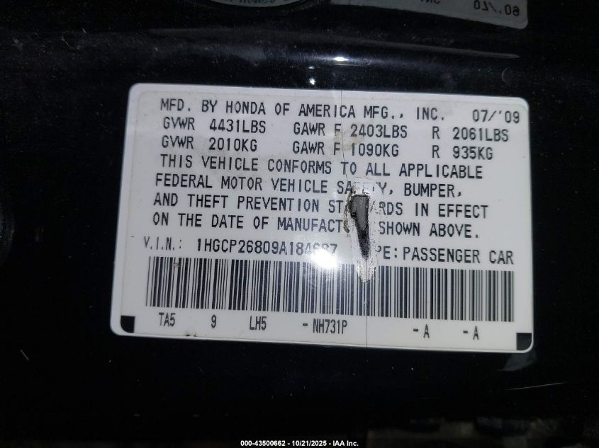 1HGCP26809A184687