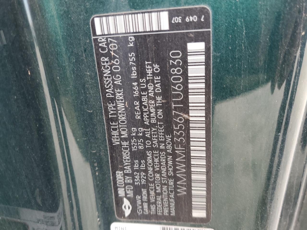 VIN: WMWMF33567TU60830