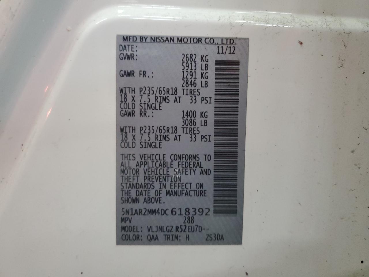 VIN: 5N1AR2MM4DC618392
