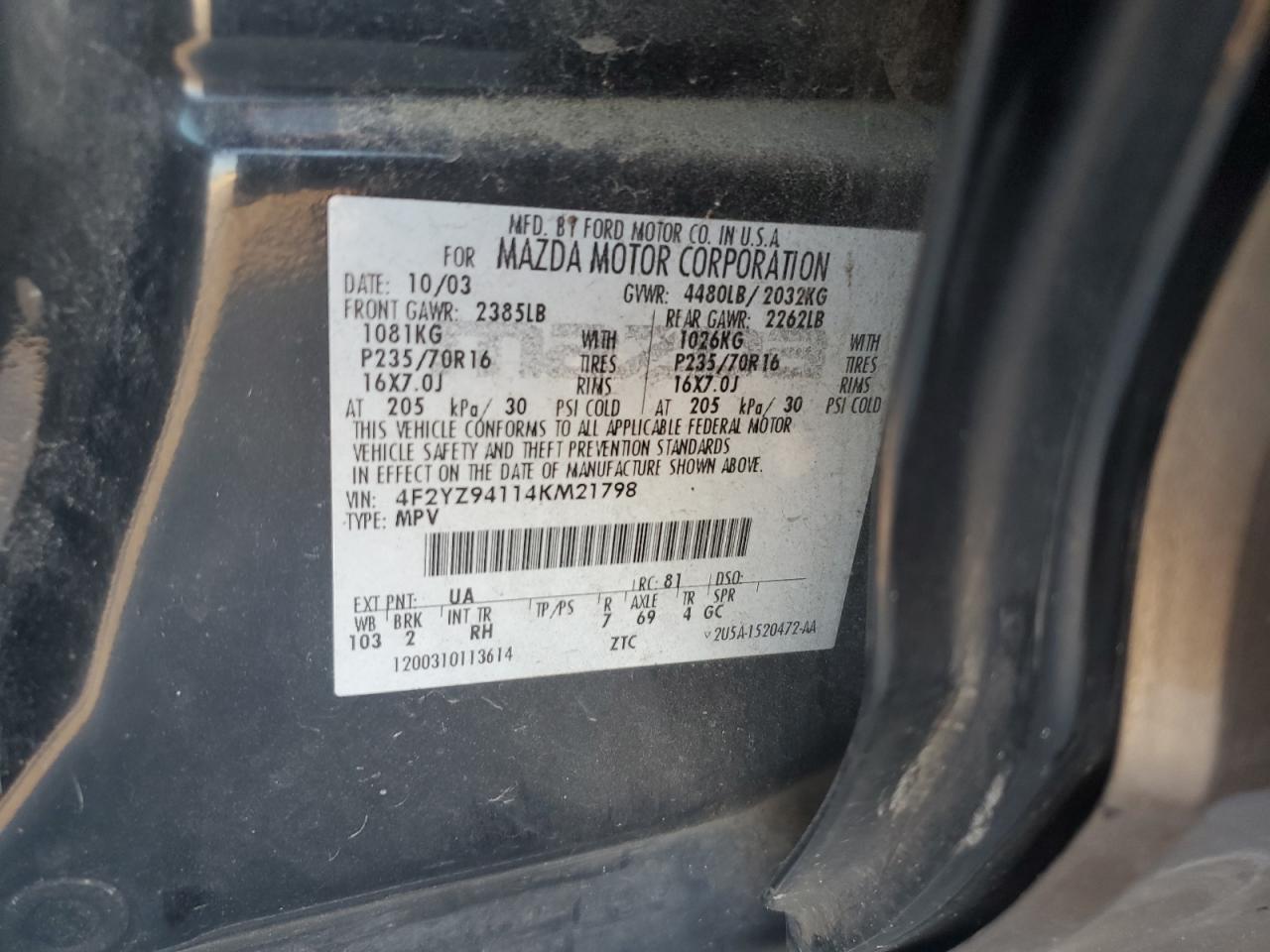 VIN: 4F2YZ94114KM21798