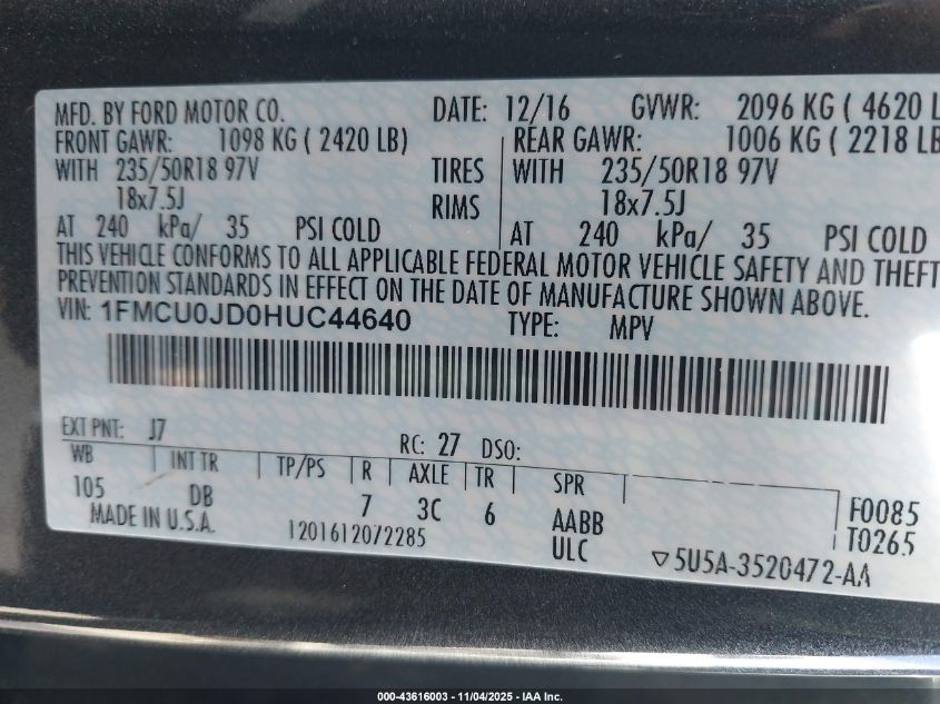 1FMCU0JD0HUC44640