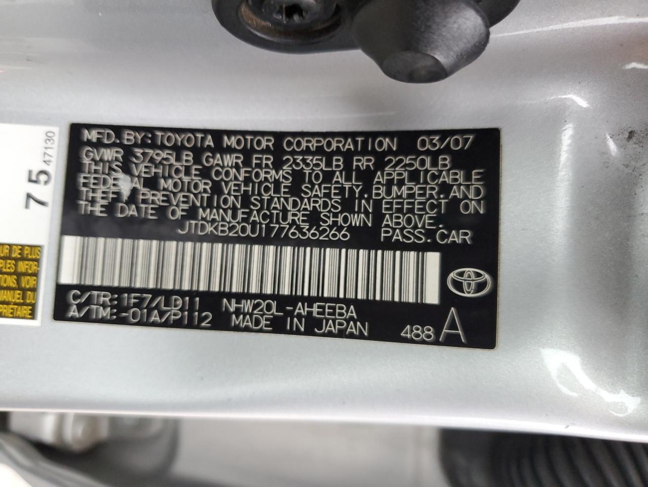 VIN: JTDKB20U177636266