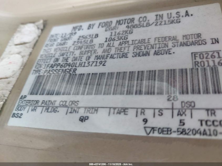 1FAPP6040LH137192