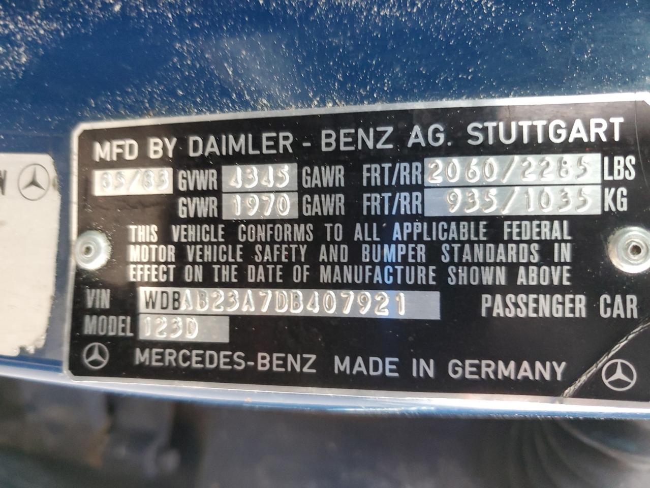 VIN: WDBAB23A7DB407921