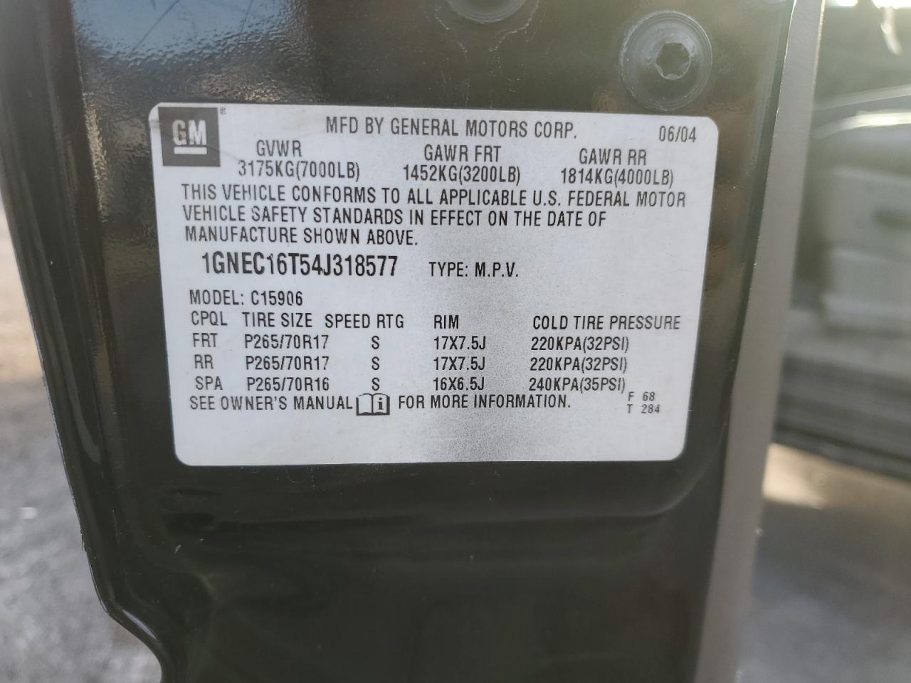 VIN: 1GNEC16T54J318577
