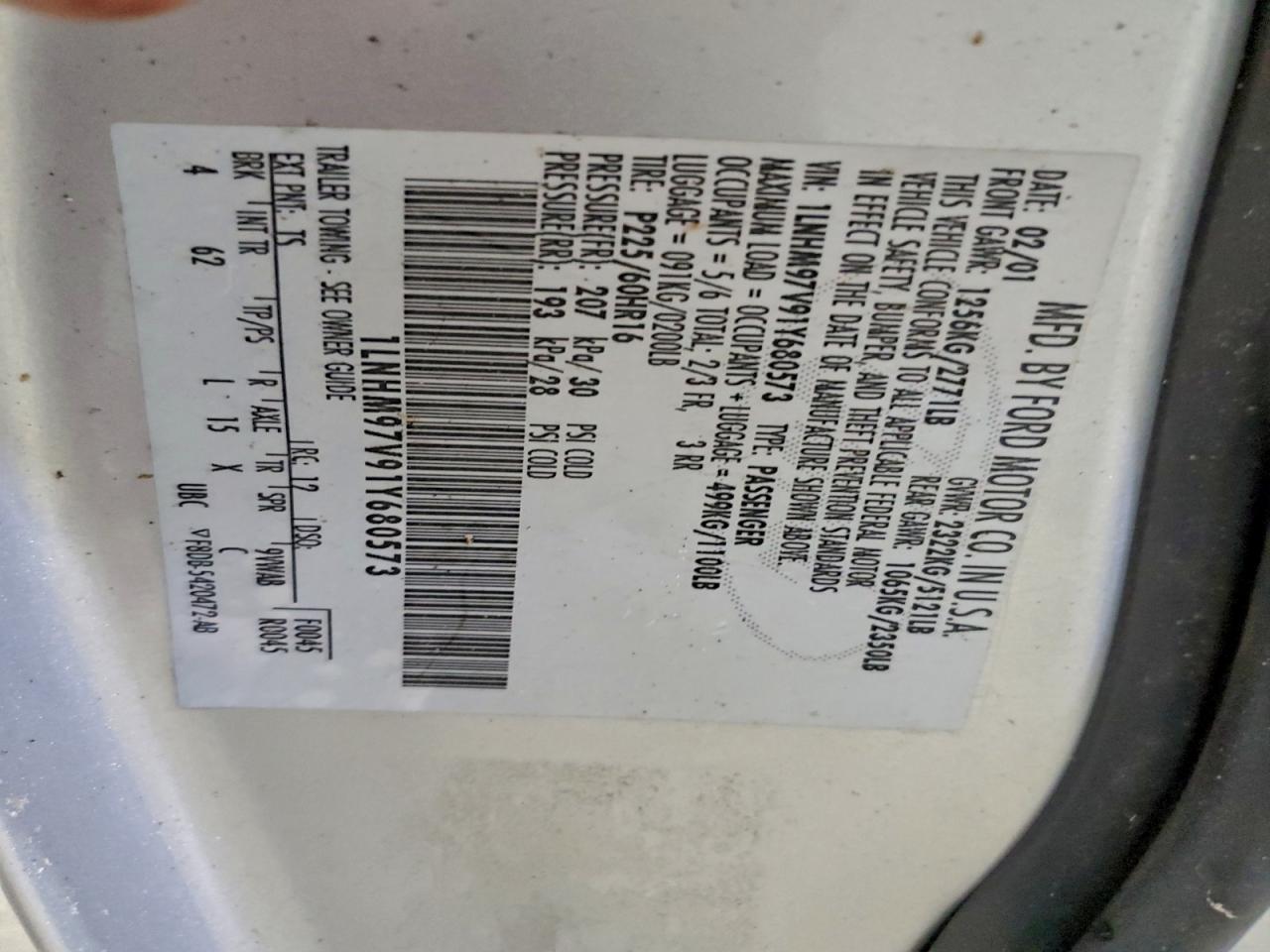 VIN: 1LNHM97V91Y680573