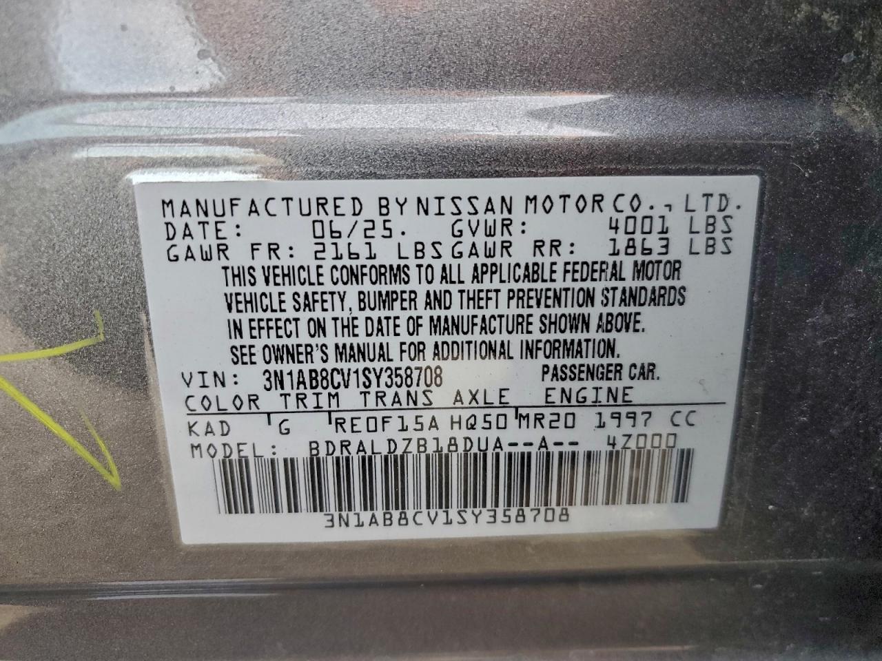 VIN: 3N1AB8CV1SY358708