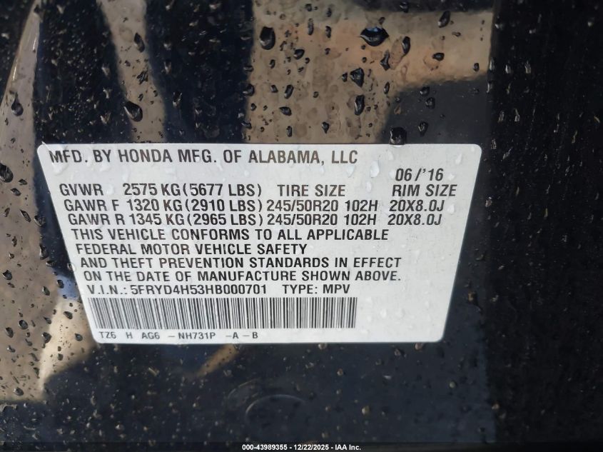 5FRYD4H53HB000701