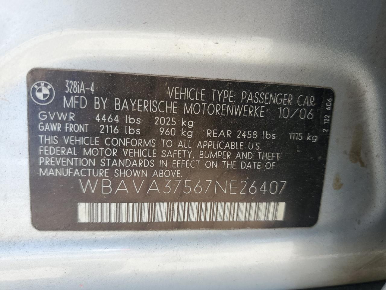 VIN: WBAVA37567NE26407