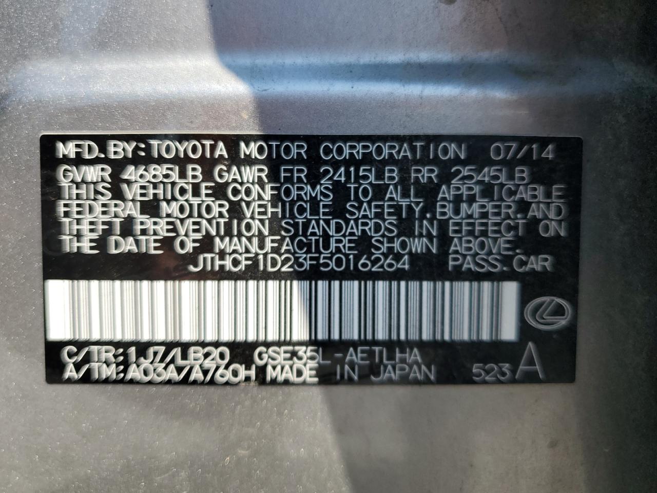 VIN: JTHCF1D23F5016264