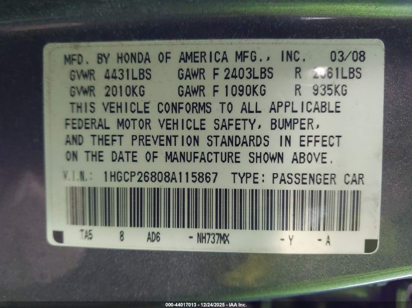 2007 HONDA ACCORD SE