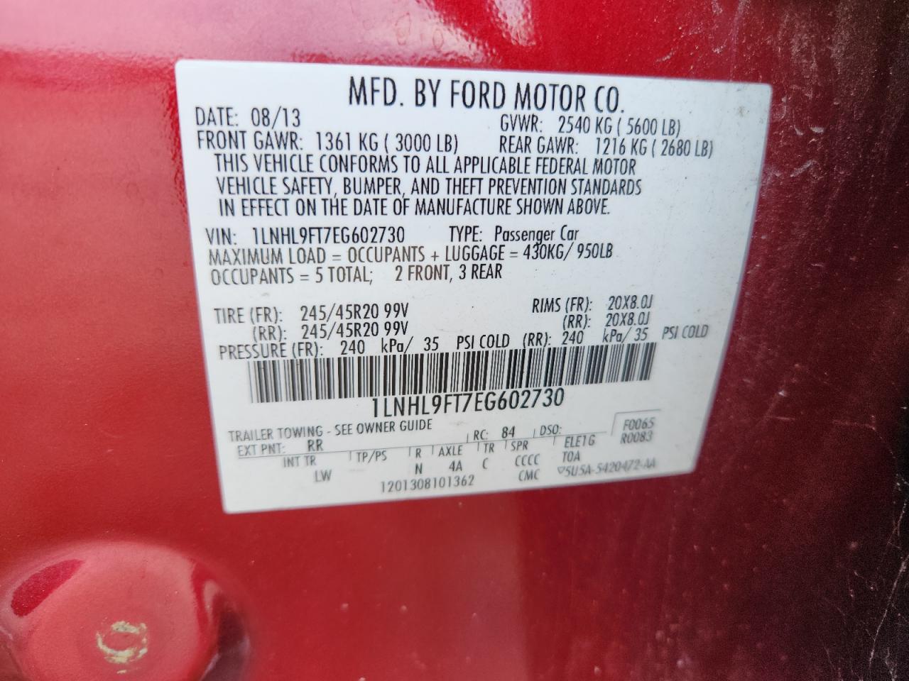 VIN: 1LNHL9FT7EG602730