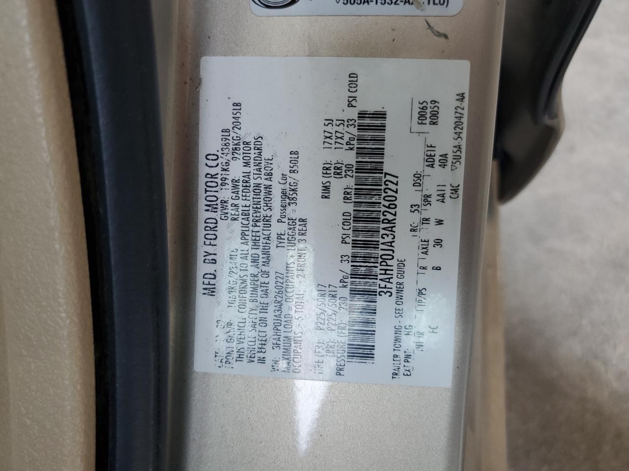 VIN: 3FAHP0JA3AR260227