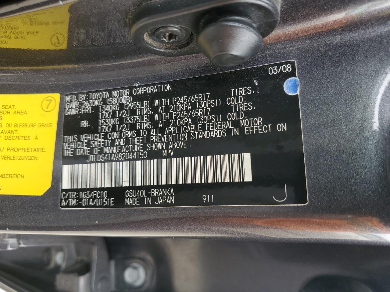 VIN: JTEDS41A982044150