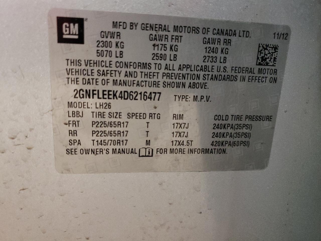VIN: 2GNFLEEK4D6216477