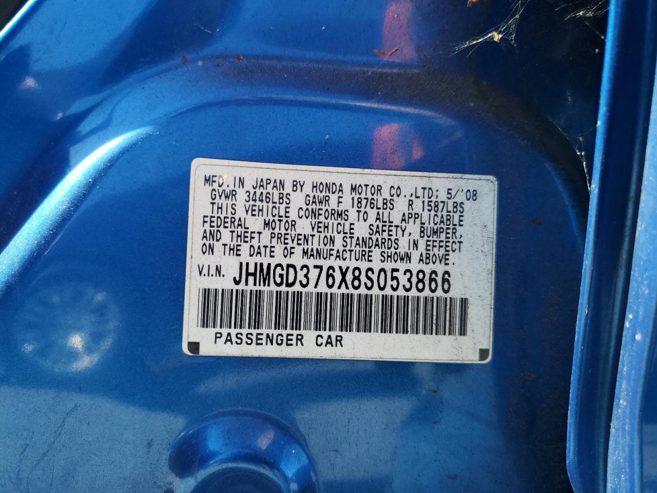 VIN: JHMGD376X8S053866